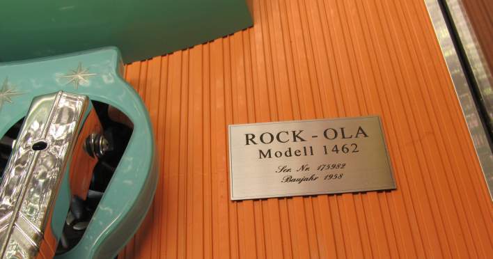 "Rock-Ola" Modell 1462 nennt sich diese Musikbox die im Jahr 1958 gebaut worden ist. Die Ziffern des Baujahres sind auch in der Seriennummer 175982 (anders gereiht) zu finden.