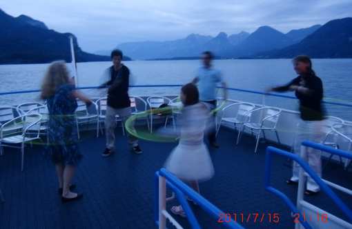 Die Möglichkeit zum üben am Oberdeck für den Hula-hoop Wettbewerb nutzen einige Gäste.
