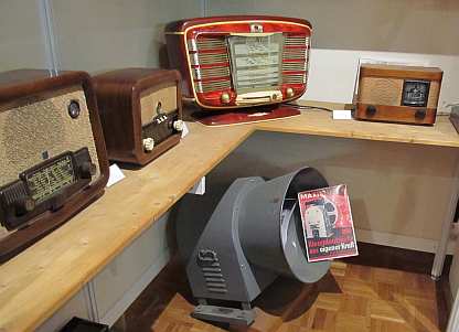 Das Bonzenradio aus Russland hat seinen Stammplatz über dem historischen Riesenlautsprecher.