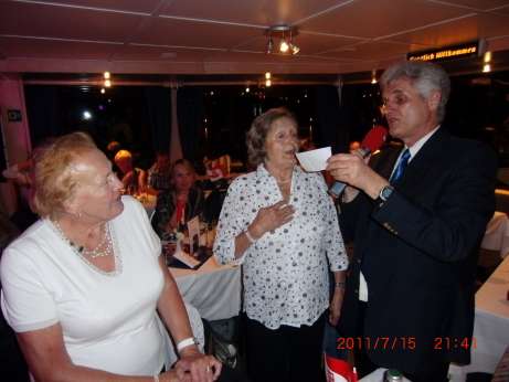 Maria Oppeneiger aus Altenmarkt im Pongau hat ihre Freundin mitgenommen. Die beiden wurden vom Enkel gebracht, und morgen werden sie vom anderen Enkel wieder abgeholt. Frau Oppeneiger grüßt ihre Kinder Margit, Ida, Jaki, Georg, Kathi und alle ihre Freunde. Für sie heute genau passend zur MS Salzburg wünscht sich Frau Oppeneiger "Steig‘ in das Traumboot der Liebe" (von Club Indonesia)